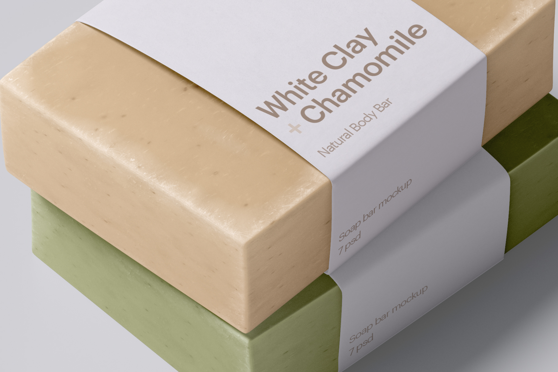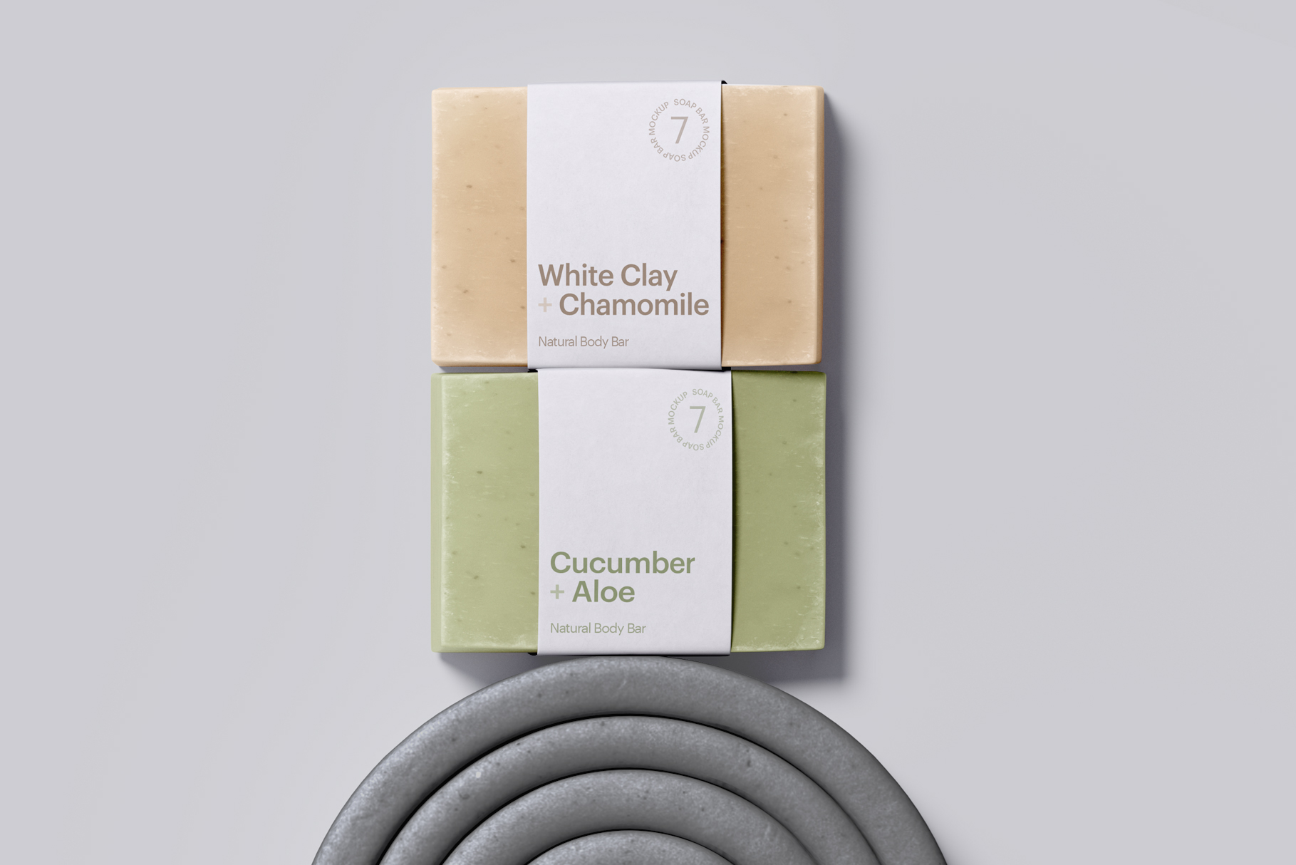 Soap Bar Mockup includes 7 pre-made scenes, preview jpg files and help pdf file.